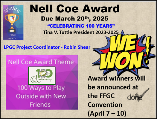 Members are encouraged to view the FFGC Handbook. There you will find a list of the many awards available, personally and at club level. There’s something for everyone. Consider chairing one and bringing the LPGC to even greater heights.